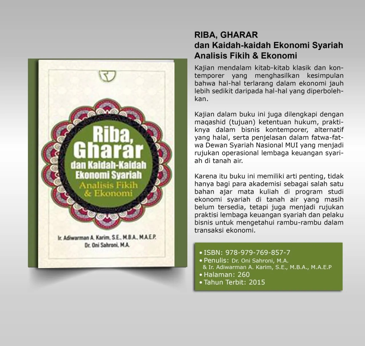 Namun karena buku ini mengulas tentang produk bank syariah maka judul saya. ∙ promo pengguna baru ∙ kurir instan ∙ bebas ongkir ∙ cicilan . Cari harga dan promo terbaik untuk riba buku diantara 1566 produk. Buku ini akan membantu anda untuk mengenal riba lebih dekat. Analisis fikih dan ekonomi / adiwarman a.